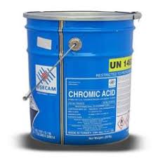 Tanım: Kromik asit, CrO3, suda çözünebilen koyu, morumsu-kırmızı, kokusuz kristallerden oluşur. Özgül ağırlığı 2,7 olup sudan daha ağırdır. Güçlü bir oksitleyici maddedir ve organik maddelerle temas ettiğinde patlayabilir. Kromik asit, cildi aşındırıcı bir zehirdir ve havanın TLV’si 0,05 mg/m3’tür. Kromik asit bilinen bir insan kanserojenidir. Dört haneli BM kimlik numarası 1463’tür. NFPA 704 tanımı sağlık 3, yanıcılık 0 ve reaktivite 1’dir. 704 pırlantanın alt kısmındaki beyaz bölüm, bunun bir oksitleyici olduğunu belirten “oksi” önekine sahiptir. Kimyasal özellikler: Kromik asit koyu morumsu-kırmızı, kokusuz pullar veya kristal tozdurKullanım Alanları: Kimyasallar (kromatlar, oksitleyici maddeler, katalizörler), krom kaplama ara maddesi, ilaç (kostik), proses gravür, anotlama, seramik cilalar, renkli cam, metal temizleme, mürekkepler, tabaklama, boyalar, tekstil mordanı, plastikler için dağlayıcı. Tanım: Gerçek kromik asit H2CrO4 yalnızca çözelti halinde bulunmasına rağmen bu isim yaygın olarak kullanılmaktadır. Tanım : kromik asit: Yalnızca kromat tuzlarında bilinen varsayımsal bir asit, H2CrO4 . Genel açıklama: Kromik asit koyu morumsu kırmızı bir katıdır, yalnızca çözelti halinde bulunur. Krom oksitin hidratı, elektrokaplama banyolarında kullanılır. Kromik asit, ısının açığa çıkmasıyla suda çözünür. Malzemenin kendisi yanıcı değildir ancak Kromik asit yanıcı malzemelerin yanmasını hızlandıracaktır. Çözeltisi metallere ve dokuya karşı aşındırıcıdır. Reaktivite Profili: Çok güçlü bir oksitleyici madde, insan kanserojen olduğu doğrulandı. İndirgeyici reaktiflerle temas halinde Kromik asit şiddetli bir patlamaya neden olabilir, organik madde ile temas halinde Kromik asit, tutuşmaya yol açacak şiddetli bir oksidasyona neden olabilir. Aseton, alkoller, alkali metaller (sodyum, potasyum), amonyak, arsenik, dimetilformamid, hidrojen sülfit, fosfor, peroksiformik asit, piridin, selenyum, kükürt ve diğer birçok kimyasal maddeyle tehlikeli biçimde reaktiftir [Sax, 9. baskı, 1996, s. 852]. Cam temizleme işlemleri için sülfürik asit ile karıştırıldığında, kapalı şişedeki kullanılmış çözelti, karbon bileşiklerinin kirlenmesinden kaynaklanan karbondioksitin iç basıncı nedeniyle patlayabilir. Tehlike : İnsan kanserojeni. Bir zehir. Cilt için aşındırıcıdır. Güçlü oksitleyici madde, indirgeyici maddelerle teması halinde patlayabilir, organik maddelerle teması halinde tutuşabilir. Üst solunum yollarını tahriş eder. Sağlık tehlikesi: Gözleri ve solunum yollarını çok tahriş edicidir. Yutma ciddi gastrointestinal semptomlara neden olur. Göz veya cilt ile teması yanıklara neden olur; uzun süreli temas dermatite (“krom yaraları”) neden olur. Güvenlik profili: İnsan kanserojen olduğu doğrulandı. Deri altı yolla zehir. Mutasyon verileri rapor edildi. Güçlü bir oksitleyici. Cildi, gözleri ve mukoza zarlarını güçlü bir şekilde tahriş eder. Dermatit, bronkoastım, “krom delikleri”, gözlerde hasara neden olabilir. Tehlikeli derecede reaktif. Asetik asit, asetik anhidrit, tetrahidronaftalin, aseton, alkoller, alkali metaller, amonyak, arsenik, brom penta florür, bütirik asit, n,ndimetilformamid, hidrojen sülfür, peroksiformik asit, fosfor, potasyum hekzasiyanoferrat, piridme, selenyum ile uyumsuz. Uyumsuzluklar: Güçlü bir oksitleyici. Sulu çözelti kuvvetli asidiktir. Asetik asit, asetik anhidrit, aseton, antrasen, krom sülfit ile reaksiyona girer; dietil eter; dimetil formamid; etanol, hidrojen sülfür; metanol, naftalin, kafur, gliserol, potasyum ferrisiyanür, piridin, terebentin, yanıcı maddeler; organik maddeler ve diğer kolayca oksitlenen malzemeler (kağıt, ahşap, kükürt, alüminyum ve plastik gibi). Nem varlığında metallere saldırır