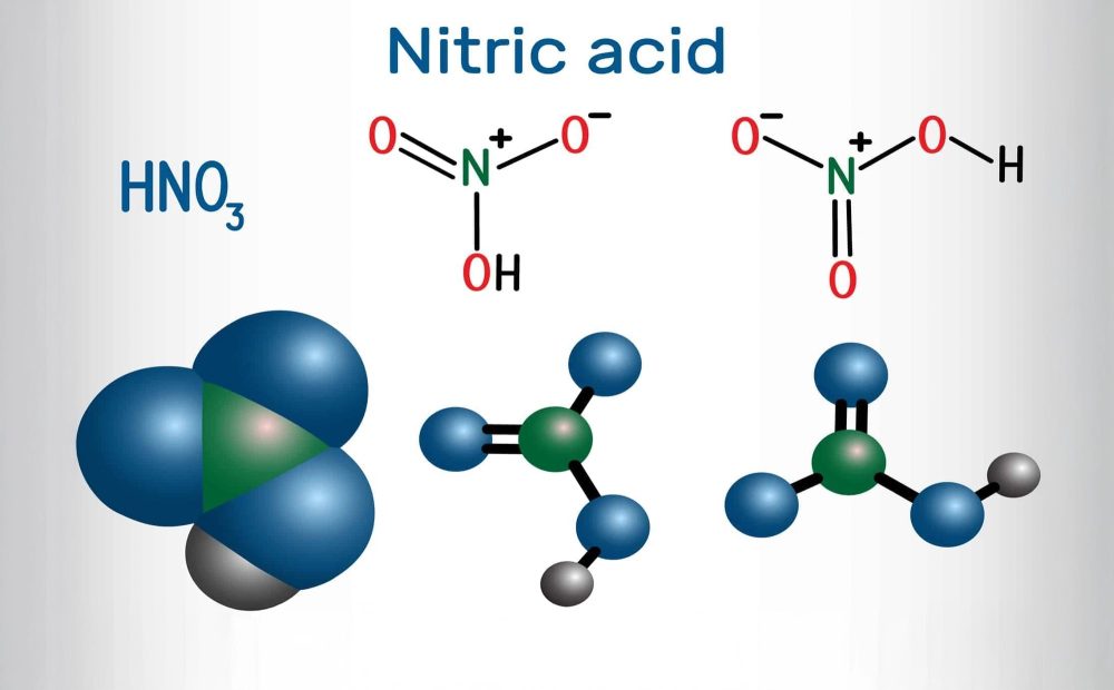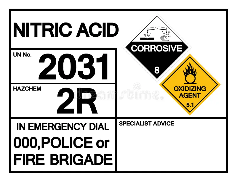 Kimyasal özellikler: Nitrik asit, HN03, güçlü, yangın tehlikesi olan bir oksidandır. Su ile karışabilen ve 86 ℃ (187 ℉) sıcaklıkta kaynayan renksiz veya sarımsı bir sıvıdır. Aqua fortis olarak da bilinen nitrik asit, kimyasal sentez, patlayıcılar ve gübre üretimi için ve metalürji, dağlama, gravür ve cevher yüzdürmede kullanılır. Nitrik asit, keskin, boğucu bir kokuya sahip, renksiz ila açık kahverengi dumanlı bir sıvıdır. Dumanlı nitrik asit kırmızımsı dumanlı bir sıvıdır. Nemli havada dumanlar. Genellikle sulu bir çözelti içinde kullanılır. Dumanlı nitrik asit, çözünmüş nitrojen dioksit içeren konsantre nitrik asittir. Nitrik asit, sudaki bir nitrojen dioksit, NO2 çözeltisidir ve dumanlı nitrik asit olarak adlandırılan, fazla miktarda NO2 içerir ve sarı ila kahverengimsi-kırmızı renktedir. Reaktivite Profili:Nitrik asit; alkoller, aminler, amonyak, berilyum alkiller, boranlar, disiyanojen, hidrazinler, hidrokarbonlar, hidrojen, nitroalkanlar, toz metaller, silanlar veya tiyoller ile temas ettiğinde tutuşur [Bretherick 1979. s.174]. İnce taneli antimon ve nitrik asidin reaksiyonu şiddetli olabilir [Pascal 10:504. 1931-34]. Brom pentaflorür güçlü nitrik asit ve güçlü sülfürik asitle şiddetli reaksiyona girer [Mellor 2, Ek. 1:172. 1956]. Deneyler, asetik anhidrit içinde ağırlıkça %50’den fazla nitrik asit karışımlarının infilaklı patlayıcılar olarak işlev görebileceğini göstermektedir [BCISC 42:2. 1971]. Eşit oranlarda aseton, nitrik asit ve %75 asetik asitten oluşan bir dağlama maddesi, Nitrik asit hazırlanıp kapalı bir şişeye yerleştirildikten 4 saat sonra patladı. Bu, hassas bir patlayıcı [Chem. Müh. Haber 38: 56. 1960]. Fosfin, konsantre nitrik asit tarafından şiddetli bir şekilde ayrışır ve alev üretilir. Sıcak dumanlı nitrik asit, bir fosfin gazı kabına atıldığında bir patlama meydana getirir [Edin. Roy. Sos. 13:88. 1835]. Nitrik asit fosfor triklorür [Comp. Parçala. 28:86]. Sodyum azid ve güçlü nitrik asidin reaksiyonu enerjiktir [Mellor 8, Ek 2:315. 1967]. Isı, duman ve sıçrama üretimi ile su ile şiddetli reaksiyona girer. Sodyum azid ve güçlü nitrik asidin reaksiyonu enerjiktir [Mellor 8, Ek 2:315. 1967]. Isı, duman ve sıçrama üretimi ile su ile şiddetli reaksiyona girer. Sodyum azid ve güçlü nitrik asidin reaksiyonu enerjiktir [Mellor 8, Ek 2:315. 1967]. Isı, duman ve sıçrama üretimi ile su ile şiddetli reaksiyona girer. Sağlık tehlikesi:Nitrik asit ciltte sarı yanıklara neden olan aşındırıcı bir maddedir. Karmaşık proteinleri ksantoproteikasit adı verilen sarı bir maddeye dönüştürerek vücut dokularını aşındırır (Meyer 1989). Asidin yutulması ağızda ve midede yanmaya ve aşınmaya neden olabilir. 5-10 mL’lik bir doz insanlar için ölümcül olabilir. Nitrik asidin buharına ve buğusuna kronik olarak maruz kalmak bronşite ve kimyasal pnömoniye neden olabilir (Fairhall 1957). Işık varlığında ayrışmasıyla oluşan oldukça zehirli bir gaz olan NO2 yayar. Nitrik asit, sülfürik asitten daha az aşındırıcıdır. Buharı ve buğusu dişleri aşındırabilir. Yanıcılık ve Patlayabilirlik: Patlayabilirlik Yanıcı bir madde değil, güçlü bir oksitleyicidir. Pek çok organik madde dahil olmak üzere kolayca oksitlenebilen malzemelerle temas, yangın veya patlamalara neden olabilir. Atık Bertarafı:Sodyum ve kalsiyum nitratın nötr çözeltisini oluşturmak için soda külü ile sönmüş kireç eklenir. Bu çözelti su ile seyreltildikten sonra boşaltılabilir. Ayrıca nitrik asit geri kazanılabilir ve bazı durumlarda akrilik elyaf döndürme solüsyonlarında olduğu gibi yeniden kullanılabilir. Kabul edilebilir imha uygulamaları hakkında rehberlik için çevre düzenleyici kurumlara danışın. Bu kirletici maddeyi (≥100 kg/mo) içeren atık üreticileri, depolama, nakliye, arıtma ve atık bertarafını yöneten EPA düzenlemelerine uymalıdır.