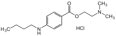 Kimyasal Özellikler : Tetrakain hidroklorür beyaz, kristal tozdur, kokusuzdur; higroskopiktir; hafif acı bir tada sahiptir ve dil üzerine konulduğunda lokal uyuşukluğa neden olur. Suda çözünür, etanolde çözünür (~750 g/l), eterde pratik olarak çözünmez. Işık yokluğunda bile nemli bir atmosfere maruz kaldığında kademeli olarak bozulur, ayrışma daha yüksek sıcaklıklarda daha hızlı olur. Kullanımlar : Tetrakain hidroklorür, oftalmolojide topikal olarak kullanılan bir lokal anesteziktir. Sinir fonksiyonunu geri dönüşümlü olarak bloke eden oldukça etkili bir lokal anesteziktir. Klinik olarak infiltrasyon anestezisi, sinir bloğu anestezisi, epidural anestezi vb. için kullanılır. Prokain ile karşılaştırıldığında, lokal anestezi etkisi dikkat çekicidir. Tetrakain hidroklorür klinik uygulamada yaygın olarak kullanılmıştır. Terapötik Fonksiyon : Lokal anestezik. Biyolojik Aktivite : tetrakain hcl güçlü bir lokal anestezik ve bir kanal fonksiyonu allosterik inhibitörüdür. tetrakain hidroklorür bir kalsiyum kanal protein inhibitörüdür ve sarkoplazmik retikulumdan voltaja duyarlı ca2+ salınımını engeller. tetrakain güçlü bir lokal anesteziktir. Biyokimya/fizyolojik Eylemler : Sarkoplazmik retikulumdan voltaja duyarlı Ca2+ salınımını engeller. Temas alerjenleri : Ametokain, diş cerrahisinde kullanılan lokal bir anesteziktir. Diş hekimleri veya diş hemşireleri ile göz doktorları tarafından kontakt dermatit etkeni olarak bildirilmiştir. Yan etkiler : Tetrakain hidroklorür, ester tipi lokal anestezik ilaç ailesindendir. Sinir uyarılarının gönderilmesini engelleyerek etki eder. Yaygın yan etkiler arasında geçici batma, yanma ve konjunktival kızarıklık, göz tahrişi, göz ağrısı, göz rahatsızlığı bulunur. Alerjik reaksiyonlar nadiren ortaya çıkabilir. Uzun süreli kullanım genellikle önerilmez çünkü gözün iyileşmesini yavaşlatabilir. Hamilelik sırasında kullanımının bebek için güvenli olup olmadığı belirsizdir. Sağlık etkileri : Tetrakain hidroklorür (TTC), suda çözünür, güçlü penetrasyona ve iyi bir anestezik etkiye sahip, topikal anestezi için yaygın olarak kullanılan uzun etkili bir lokal anesteziktir. Ancak, TTC yüksek geçirgenliği nedeniyle diğer lokal anesteziklere kıyasla daha yüksek bir sitotoksisiteye sahiptir. Önceki çalışmalar, TTC’nin insan kornea stromal hücreleri ve insan kornea epitel hücreleri gibi belirli hücre tipleri üzerinde sitotoksik bir etki uyguladığını ve apoptoz ve nekrozu indüklediğini bildirmiştir. Araştırmalar, büyük dozlarda intratekal TTC’nin beyin omurilik sıvısındaki glutamat konsantrasyonunu artırdığını ve böylece tavşanlarda nöronal hasara neden olduğunu bulmuştur. Ek olarak, AMPA reseptör aktivasyonunun omurilikte TTC kaynaklı nörotoksisitede rol oynadığı ortaya çıkmıştır. TTC kaynaklı apoptoz, mitokondriye bağlı bir yolda Fas ölüm reseptörleri aracılığıyla tetiklenebilir ve Bcl-2 ailesi proteinleri tarafından aracılık edilebilir. TTC’nin ölüm reseptörü aracılı mitokondri bağımlı bir yol aracılığıyla insan kornea epitel (HCEP) hücre apoptozu ile indüklediği. Düşük TTC konsantrasyonları insan T-lenfoma hücrelerinin apoptozunu indüklerken, daha yüksek TTC konsantrasyonu nekrozu indükledi[1]. Klinik iddialar ve araştırmalar : Tetracaine Hydrochloride Oftalmik Solüsyon, USP 0.5%’in topikal uygulaması lokalize geçici anesteziyle sonuçlanır. Maksimum etki, damlatıldıktan sonra 10-20 saniye içinde elde edilir ve etkinlik 10-20 dakika sürer. Tekrarlanan dozlama ile etki süresi uzatılabilir. Toksik Madde Tarama Seviyesi : Tetrakain hidroklorür için başlangıç eşik tarama seviyesi (ITSL), yıllık ortalama zamana göre 0,3 μg/m3’tür.