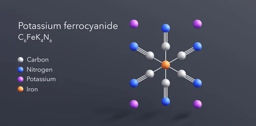 Kimyasal özellikler : Limon sarısı monoklinik sütunlu kristal veya toz, bazen kübik metamorfozlu. Suda çözünür, etanol, eter, metil asetat ve sıvı amonyakta çözünmez. Kullanım Alanları : Ferrisiyanür ile birleştirildiğinde orta derecede güçlü oksitleyici. Bir siyanojel yoluyla bir kserojel oluşumunda uygulanan jel, katı hal gaz sensörlerinde potansiyel kullanıma sahiptir. Kullanım Alanları : Potasyum ferrosiyanür, potas sarı prussiatı olarak da bilinen sarı bir kristaldir. Sıcak potasyum karbonatın yün veya boynuz kırpıntılarıyla bir demir çubukla karıştırılmasıyla yapıldı. Suda 1:4 oranında çözünür ancak alkolde çözünmez. Potasyum ferrosiyanür, bazı demir işlemleri için geliştirici olarak ve alkalin piro geliştiriciler için katkı maddesi olarak kullanıldı. Başvuru : Potasyum hekzasiyanoferrat(II) trihidrat aşağıdaki işlemlerde kullanılabilir: Carrez I çözeltisinin hazırlanması. Altın nanopartikülleri (AuNP’ler) bazlı melaminin kolorimetrik tespiti için süt numunesi hazırlama. Elektrokimyasal testler için bir redoks çifti çözeltisi olan ferrosiyanür/ferrisiyanür reaksiyonunun hazırlanması. Hazırlık : Potasyum hekzasiyanoferrat(II), K4Fe(CN)6·3H20, ticari olarak gazhanede harcanan oksitten (Prusya mavisi içerir) kireçle işleme tabi tutularak ve ardından çözeltinin çözünür bir potasyum tuzu ile işlenmesiyle elde edilir; daha az çözünür olan potasyum hekzasiyanoferrat(II) bu karışımdan kristalize edilebilir. Laboratuarda sulu demir(II) sülfatın fazla miktarda potasyum siyanür ile işlenmesiyle kolayca hazırlanır; Başlangıçta çökelmiş olan demir(II) siyanür, fazla miktarda potasyum siyanür çözeltisi içinde kaynatıldığında çözünür ve ferrosiyanür soğuduğunda kristalleşir. Genel açıklama : Yaygın olarak potasyum ferrosiyanür olarak bilinen potasyum hekzasiyanoferrat(II) trihidrat, yaygın olarak kullanılan bir topaklanma önleyici maddedir. Sitotoksik ve genotoksik etkisi değerlendirilmiştir. Süperhidrofobik bir yüzey üzerinde sulu potasyum hekzasiyanoferrat çözeltisi damlacıklarında kimyasal bahçenin büyümesi rapor edilmiştir. Yumuşak çeliğin korozyonuna karşı fosforik asit çözeltisindeki potasyum ferrosiyanürün inhibisyon etkinliği araştırıldı. Saflaştırma Yöntemleri : Susuz tuz, vakumlu desikatörde P2O5 üzerinde 110° sıcaklıkta kurutularak hazırlanır. Trihidratı elde etmek için tuzun bir desikatörde doymuş sulu sakkaroz ve NaCl çözeltisi üzerinde dengelenmesi gerekir. Aynı zamanda, eşit hacimde soğuk %95 EtOH eklenerek, birkaç saat bekletildikten sonra santrifüje tabi tutularak ve soğuk %95 EtOH ile yıkanarak 0°C’de doymuş bir çözeltiden çökeltilebilir. Son olarak su pompası vakumu ile havayla emilerek kurutulur. Susuz tuz, hidratın platin bir teknede 90° sıcaklıkta yavaş N2 akışında kurutulmasıyla elde edilir [Loftfield & Swift J Am Chem Soc 60 3083 1938]. Yapı ve konformasyon : Trihidrat diyamanyetik ve dimorfiktir ve monoklinik (psödotetragonal) ve tetragonal formlarda bulunur. Çözeltideki kızılötesi spektrumu 2044 cm – 1’de tek bir ν(C≡ N) gösterir , ancak katı halde çok sayıda bant gözlemlenir160; ν(Fe-C) 416cm – 1’de meydana gelir . Beyaz, susuz K4Fe(CN)6, trihidratın 100°’de dehidre edilmesiyle elde edilir.