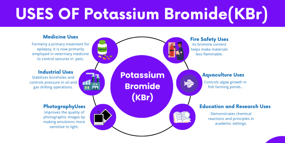 Potasyum bromür (KBr), 19. yüzyılın sonlarında ve 20. yüzyılın başlarında antikonvülsan ve sakinleştirici olarak yaygın şekilde kullanılan bir tuzdur ve reçetesiz kullanımı ABD’de 1975’e kadar uzanır. Etkisi bromür iyonundan kaynaklanmaktadır (sodyum bromür de aynı derecede etkilidir). Potasyum bromür veteriner ilacı olarak, köpekler için antiepileptik ilaç olarak kullanılır. Standart koşullar altında potasyum bromür beyaz kristal bir tozdur. Suda serbestçe çözünür; asetonitrilde çözünmez. Seyreltik bir sulu çözeltide, potasyum bromürün tadı tatlıdır, daha yüksek konsantrasyonlarda tadı acıdır ve konsantrasyon daha da yüksek olduğunda tadı tuzludur.[ne kadar?] Bu etkiler temel olarak potasyum iyonunun özelliklerinden kaynaklanmaktadır; sodyum bromürün tadı. herhangi bir konsantrasyonda tuzludur. Yüksek konsantrasyonda potasyum bromür, mide mukozasını güçlü bir şekilde tahriş ederek bulantı ve bazen kusmaya neden olur (tüm çözünebilir potasyum tuzlarının tipik bir etkisi). [Görünüş] Kokusuz, renksiz kristaller veya beyaz kristal toz veya keskin acı tuzlu tadı olan beyaz granüler katı. [Yutma] Mağdurun bilinci yerindeyse ve uyanıksa, 2-4 bardak süt veya su verin. Bilinci yerinde olmayan bir kişiye asla ağız yoluyla herhangi bir şey vermeyin. Tıbbi yardım alın. Derhal tıbbi yardım alın. Ağzı su ile yıkayın. [Solunum] Derhal temiz havaya maruz kalmaktan kaçının. Nefes almıyorsa suni teneffüs yapın. Nefes almakta zorlanıyorsanız oksijen verin. Tıbbi yardım alın. [Deri] Tıbbi yardım alın. Kirlenmiş giysileri ve ayakkabıları çıkarırken cildi en az 15 dakika boyunca bol sabun ve suyla yıkayın. Yeniden kullanmadan önce giysileri yıkayın. Kirlenmiş giysileri ve ayakkabıları çıkarın.【Gözler】 Gözleri en az 15 dakika boyunca bol suyla yıkayın, ara sıra üst ve alt göz kapaklarını kaldırın. Derhal gözleri bol suyla en az 15 dakika boyunca, ara sıra üst ve alt göz kapaklarını kaldırarak yıkayın. Tıbbi yardım alın. [Depolama] Serin ve kuru bir yerde saklayın. Nemden korunarak saklayın. [Kullanım] Kullandıktan sonra iyice yıkayın. Kirlenmiş giysileri çıkarın ve tekrar kullanmadan önce yıkayın. Yeterli havalandırmayla kullanın. Gözlerle temasından kaçının. Yutmayın veya solumayın. Solunum】 Yutma için açıklananlara benzer etkilere neden olabilir. Solunum yolu tahrişine neden olabilir. [Cilt] Cilt tahrişine neden olabilir. [Gözler] Göz tahrişine neden olabilir. [Yutma] Heyecanla karakterize merkezi sinir sistemi depresyonuna, ardından baş ağrısı, baş dönmesi, uyuşukluk ve mide bulantısına neden olabilir. İlerleyen aşamalarda bayılma, bilinç kaybı, koma ve solunum yetmezliği nedeniyle olası ölüm meydana gelebilir. Akut inhalasyona benzer etkilere neden olabilir. [Tehlikeler] Bu kimyasal için parlama noktası verileri mevcut değildir; ancak muhtemelen yanıcı değildir. [Maruz Kalma Etkileri] Kronik yutma, akut yutmaya benzer etkilere neden olabilir. Uzun süreli maruz kalma halüsinasyonlar, depresyon, psikoz ve muhtemelen koma gibi zihinsel değişikliklere neden olabilir. [Kararlılık] Normal sıcaklık ve basınç altında kararlıdır. [Uyumsuzluklar] Güçlü oksitleyici maddeler; güçlü asitler; ağır metal tuzları Brom triflorür ile şiddetli reaksiyona girer.【Ayrışma】Hidrojen bromür, potasyum oksitler.