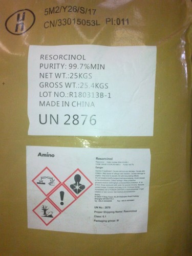 [Kimyasal Özellikler] Beyaz iğne benzeri kristaldir. Işığa ve havaya maruz kaldığında veya demirle temas ettiğinde pembeleşecektir. Tatlı bir tadı var. Suda, etanolde, amil alkolde çözünür, eterde kolayca çözünür, gliserolde, kloroformda, karbon disülfürde ve benzende az çözünür. [Genel Açıklama] Tamamen saf olmasa bile ışığa maruz kaldığında pembeye dönüşen çok beyaz kristal katı. Tutuşması zor olmasına rağmen yanar. Yoğunluk yaklaşık 1,28 g/cm3’tü. Cilt tarafından emilmesi toksiktir. Plastik ve ilaç yapımında kullanılır. [Reaktivite Profili] Zayıf bir organik asittir. Asetanilid, albümin, alkaliler, antipirin, kafur, demir tuzları, mentol, ispirto nitro eter ve üretan ile uyumsuz. Oksitleyici maddelerle reaksiyona girebilir. Konsantre nitrik asitle potansiyel olarak patlayıcı bir reaksiyona sahiptir. Demirle temas ettiğinde pembeye döner. [Tehlike] Cildi ve gözleri tahriş eder. Şüpheli kanserojen. [Sağlık Tehlikesi] Buharların veya tozun solunması solunum yollarının tahriş olmasına neden olur. Yutma, mukoza zarının yanmasına, şiddetli ishale, solgunluğa, terlemeye, halsizliğe, baş ağrısına, baş dönmesine, kulak çınlamasına, şoka ve şiddetli kasılmalara neden olur; ayrıca dalakta sideroza ve böbrekte tübüler hasara neden olabilir. Gözlerle teması tahrişe neden olur. Yaralardan veya kırılmamış deriden absorbe edilebilir ve şiddetli dermatit, methemoglobinemi, siyanoz, konvülsiyonlar, taşikardi, nefes darlığı ve ölüme neden olabilir. [İlk yardım] Bu kimyasalın göze kaçması halinde, kontakt lensleri hemen çıkarın ve ara sıra üst ve alt göz kapaklarını kaldırarak en az 15 dakika boyunca yıkayın. Derhal tıbbi yardım isteyin. Bu kimyasalın cilde temas etmesi halinde, kirlenmiş giysileri çıkarın ve hemen sabun ve suyla yıkayın. Derhal tıbbi yardım isteyin. Bu kimyasal solunduysa, maruziyetten uzaklaşın, solunum durmuşsa kurtarma solunumuna başlayın ve kalp hareketi durmuşsa CPR’ye başlayın. Derhal tıbbi bir tesise nakledin. Bu kimyasal yutulduğunda tıbbi yardım alın. Bol miktarda su verin ve kusturun. Bilinci yerinde olmayan kişiyi kusturmayın. [Uyumsuzluklar] Oksitleyicilerle, nitrik asitle reaksiyona girer; yağ, demir tuzları; metanol, asetanilid, albümin, antipiren, alkaliler, üretan, amonyak, amino bileşikleri. higroskopik; havadaki nemi emer. [Kullanım Alanları] Sentetik reçineler, yapıştırıcılar, boyalar ve ultraviyole emici ajanların üretimi için hammadde olarak kullanılabilir. Lastiğin daldırma kordonu olarak da kullanılabilir. Tıbbi olarak dezenfeksiyon antiseptik maddesi olarak kullanılabilir. Resorsinol aynı zamanda 1,3-hidrokinon olarak da bilinir. Pestisit alanında, pestisit coumaphos’un sentezinde ara madde 3-kloro-4-metil kumarin ve herbisit oksifluorfen olarak kullanılabilir. Ayrıca boyaların, özel kaplamaların, farmasötiklerin, fotoğraf malzemelerinin, sentetik reçinelerin, yapıştırıcıların ve kozmetiklerin üretiminde de kullanılabilir. Resorsinol, fenol ve kresol ile benzerdir. Formaldehit ile reaksiyona girerek yoğuşma polimeri üretebilir. Naylon amaçlı ipek tutkalı ve lastik kordunun yapışkan maddesinin yapımında, ahşap tutkalının yapımında ve vinil malzeme ve metal için yapıştırıcı olarak kullanılabilir. Resorsinol, birçok azo boyası ve kürk boyasının ara maddesinin yanı sıra farmasötik ara maddeler olan p-nitrojen salisilik asidin hammaddesidir. Resorsinol bakterisidal etkilere sahiptir ve kozmetik ve dermatolojik ilaç macunları ve merhemlerinde koruyucu olarak kullanılabilir. Resorsinol türevleri, β-metilumbelliferon, optik ağartıcı için ara madde olarak kullanılabilir; tri-nitro rezorsinol patlatıcıdır. Benzofenon sınıfı ultraviyole emicilerin üretiminde de önemli miktarda resorsinol kullanılmaktadır.